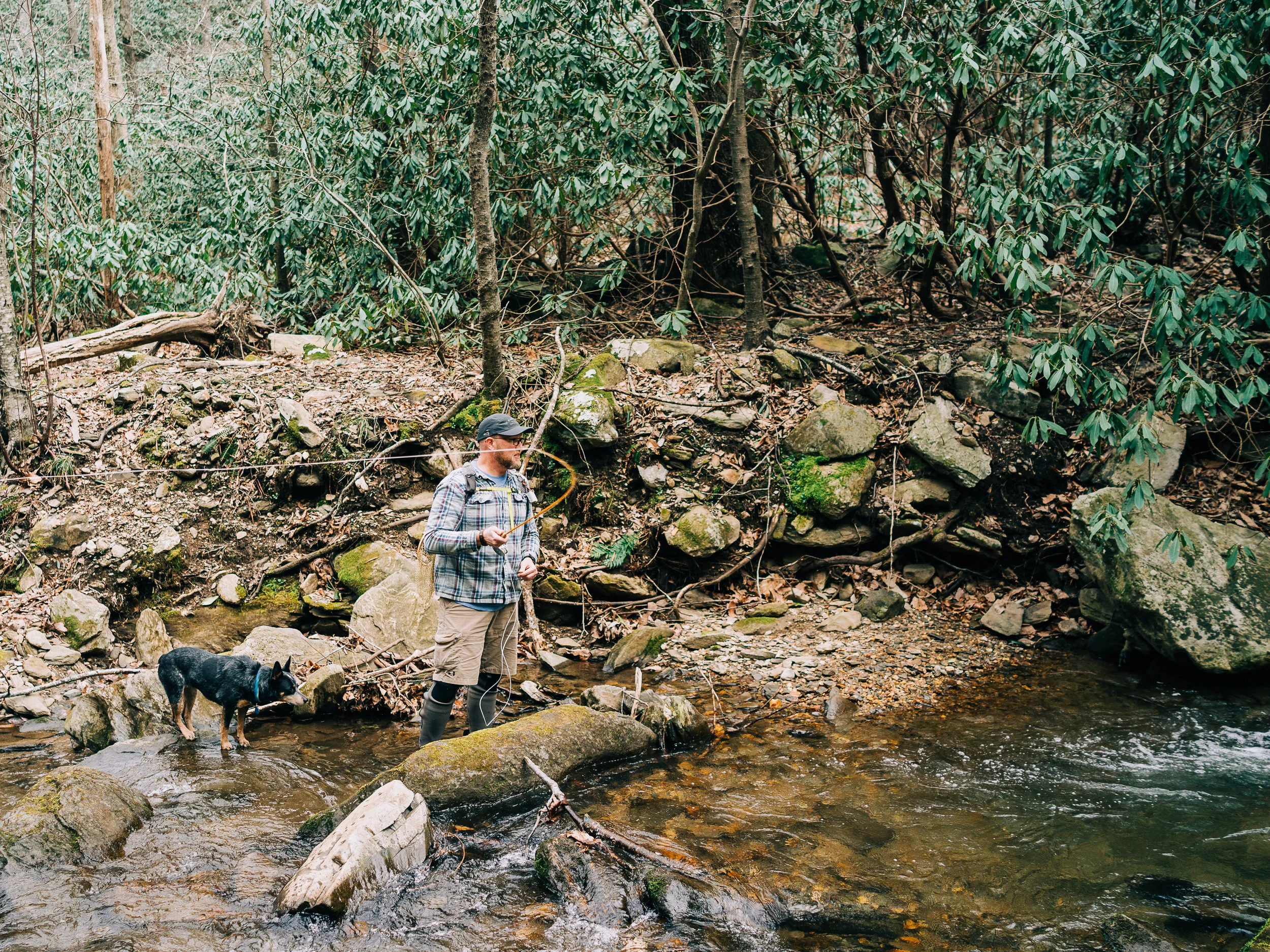Casting to the fishy part of the pool under a downed tree.